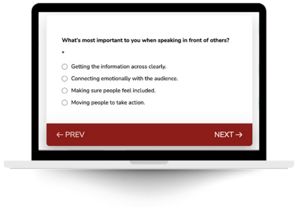 SpeakerBrand tracks seventy speaking skills and points you to the few that matter most for your growth today. Build confidence by training with intention.